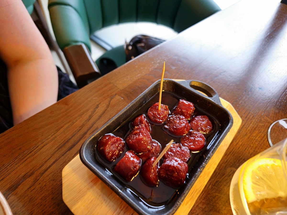 Their menu features an exciting array of dishes that cater to various tastes. If you're a fan of classic flavors with a twist, try their Hummus paired with Chorizo, or go for the savory Lamb Shish. For a unique and satisfying side, the Patatas Bravas and Garlic Mushrooms are a must-try. If you're in the mood for something indulgent, their Sticky Toffee Pudding or Breaded Brie will surely hit the spot. And, of course, the Cauliflower Wings and Chimichurri are perfect for those who love vibrant flavors.